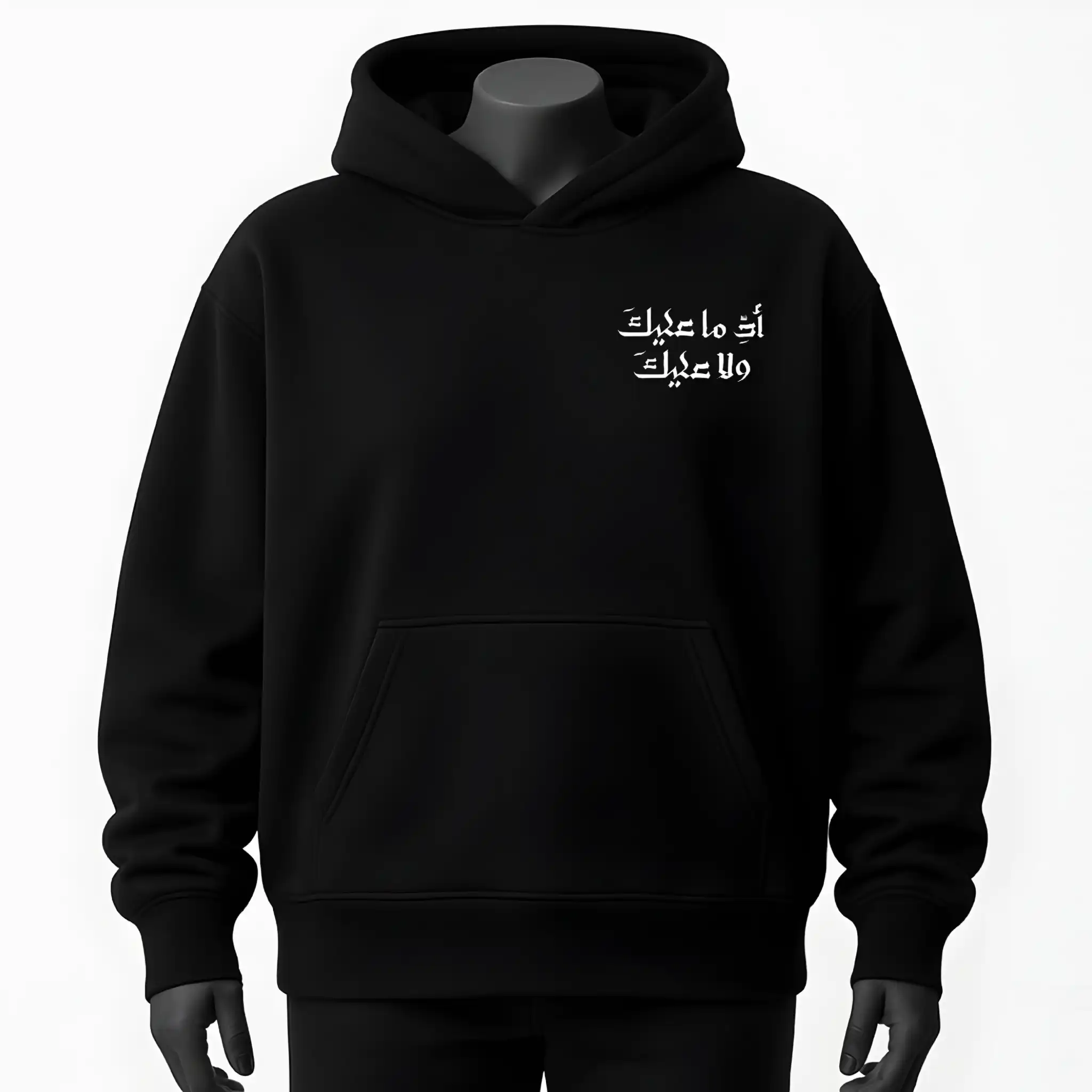هودي أسود فاخر بخامة قطن 100% وتقفيل احترافي بأحدث الماكينات. تصميم أنيق يدوم طويلاً ويمنحك راحة وثقة في كل مرة ترتديه. احصل على جودة استثنائية الآن.