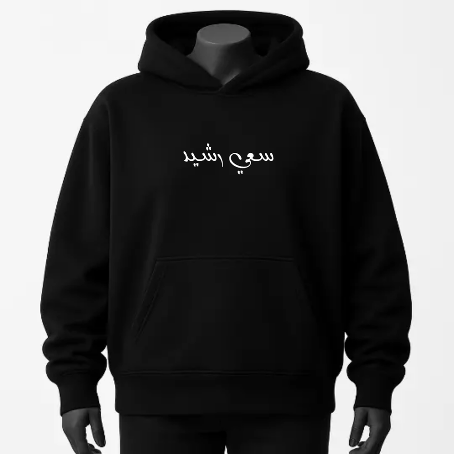 هودي اسود أوفر سايز ( سعي رشيد )