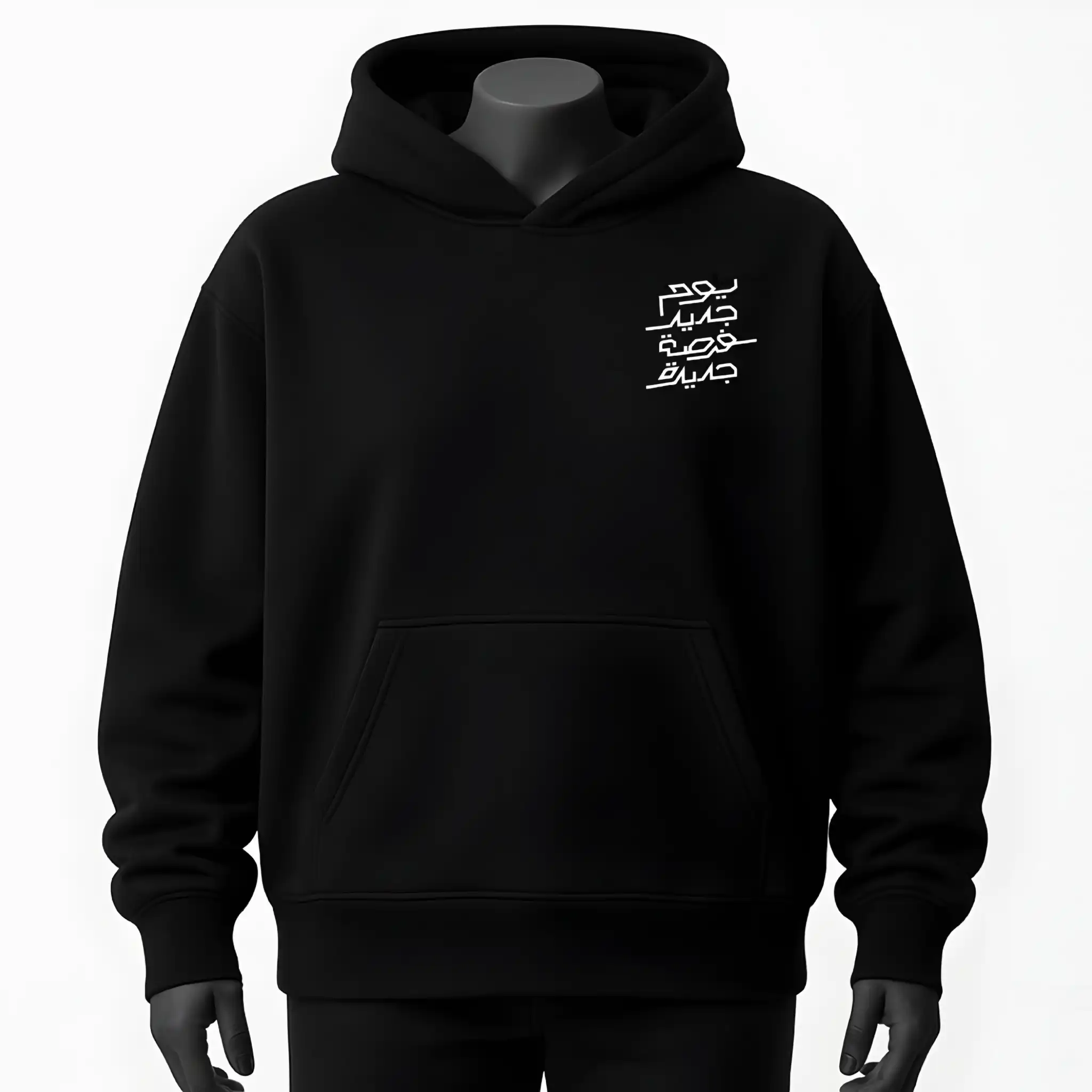 هودي اسود أوفر سايز ( يوم جديد ) 2